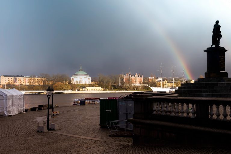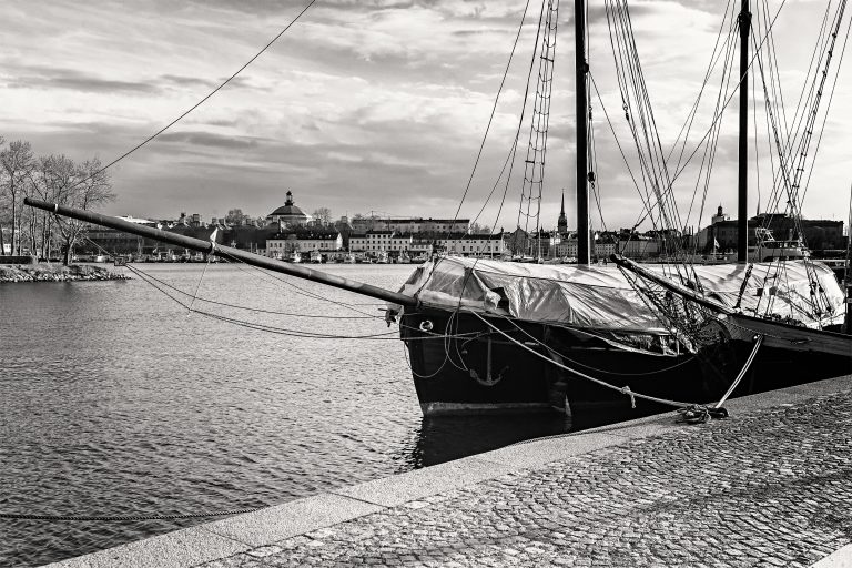 Men min lilla inköpsrunda ändrade plötsligt karaktär, vädrets makter var nämligen gunstiga. I stället för att bara gå till den matbutik som med en släng av hybris kallar sig Sveriges bästa (eller om det var ”mest prisbelönta”) bestämde jag mig för en promenad av grad 2 (skalan når upp till 8 eller 10). En liten lov ner mot Strandsvägskajen och sedan uppför Nybrogatan till Karlaplan (med butiken) och därifrån hem (lat grad 1-promenad). Kameran fick följa med – som så ofta gav den anledning till lite nyttig motion. Vyerna är desamma, så klart, men stryktåliga. Som fotograf ordnar jag topografi och bebyggelse efter mitt eget schema: några steg bakåt, framåt eller åt sidan. Lätt förskjuts motivets skiftande formationer i önskad riktning, och i gynnsamma fall uppstår något som liknar en komposition, som på sätt och vis inte betyder stort mer än ”ordning”. I skapande arbete står och faller allt med den ordning som svarar mot ”den rätta känslan”. Ungefär som i livet. Men först – återvinningsstationen, var sak för sig.